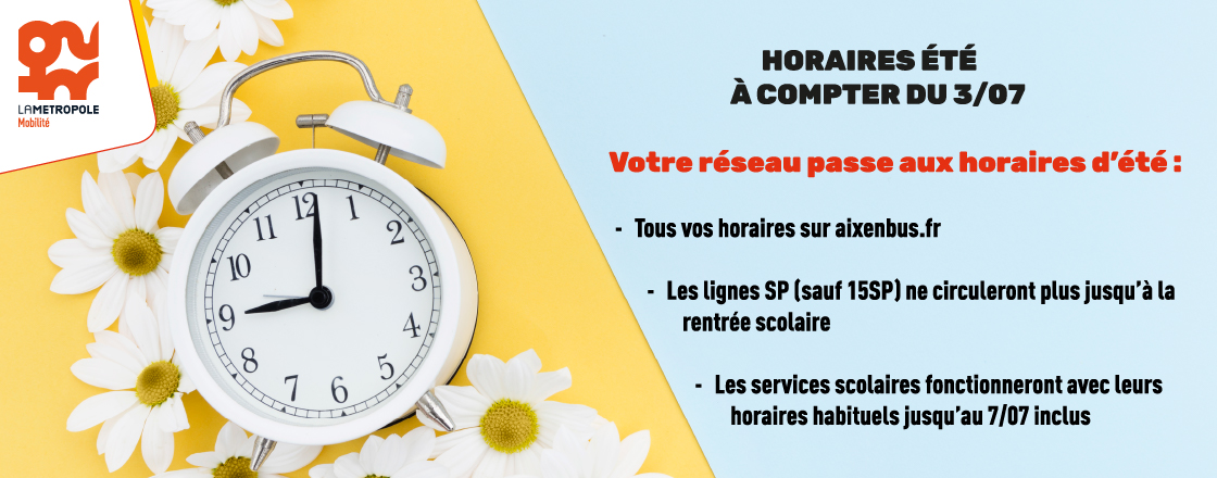 AIX EN BUS – HORAIRES D’ETE à partir du 3 Juillet