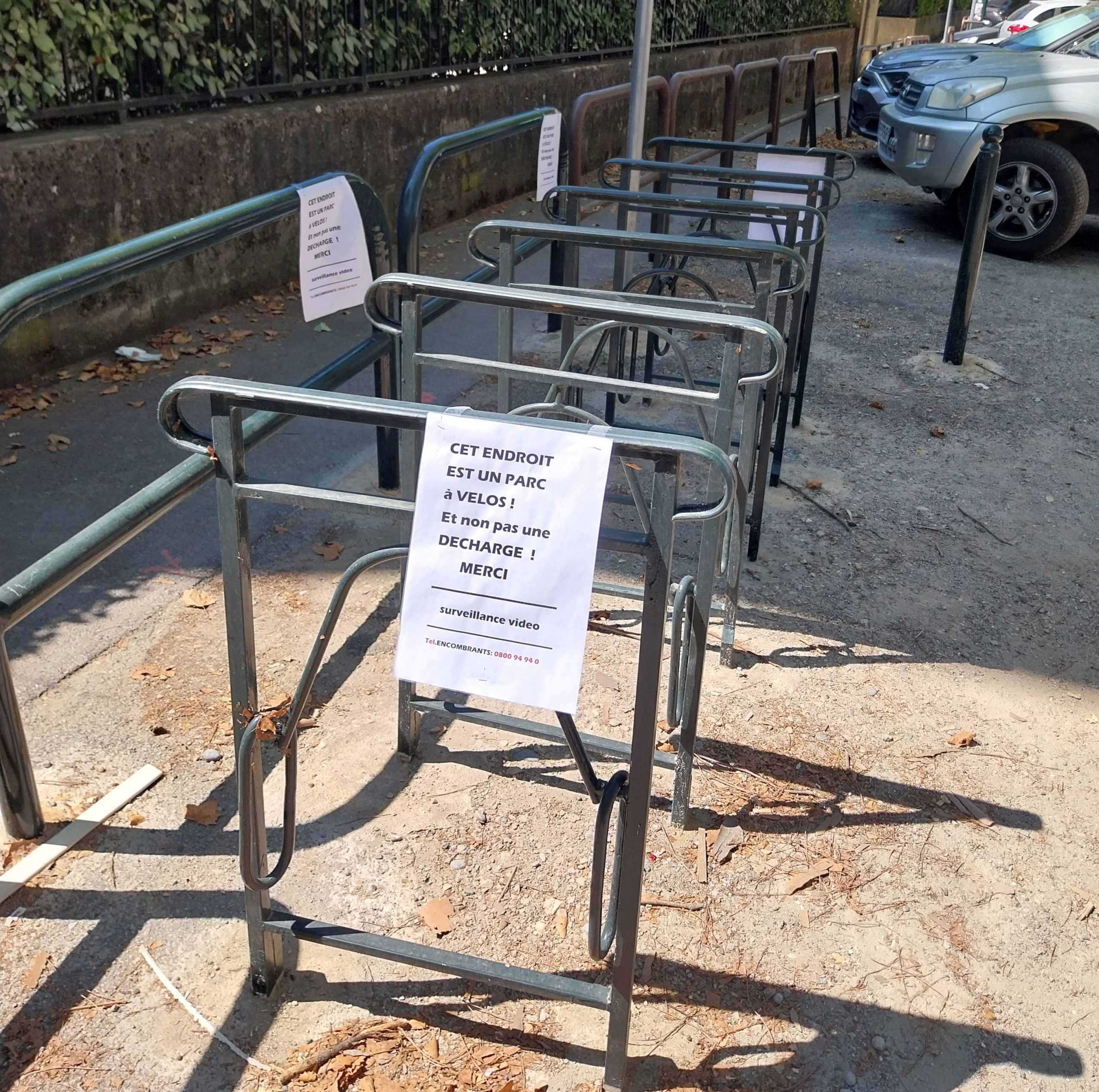 Des affichettes ont été collées par une personne excédée, afin de rappeler la marche à suivre pour se débarrasser de ses affaires sans les déposer chez le voisin.