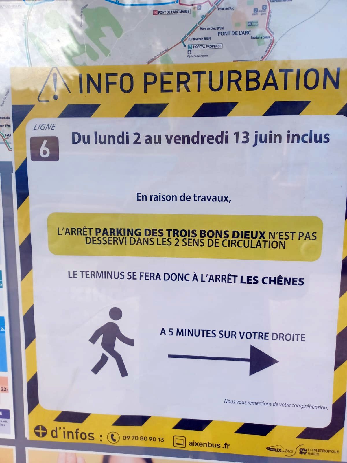 En attendant, le terminus du 6 est avancé à la station Les Chênes, au carrefour Repentance/Fontenaille, dit de la Libération.