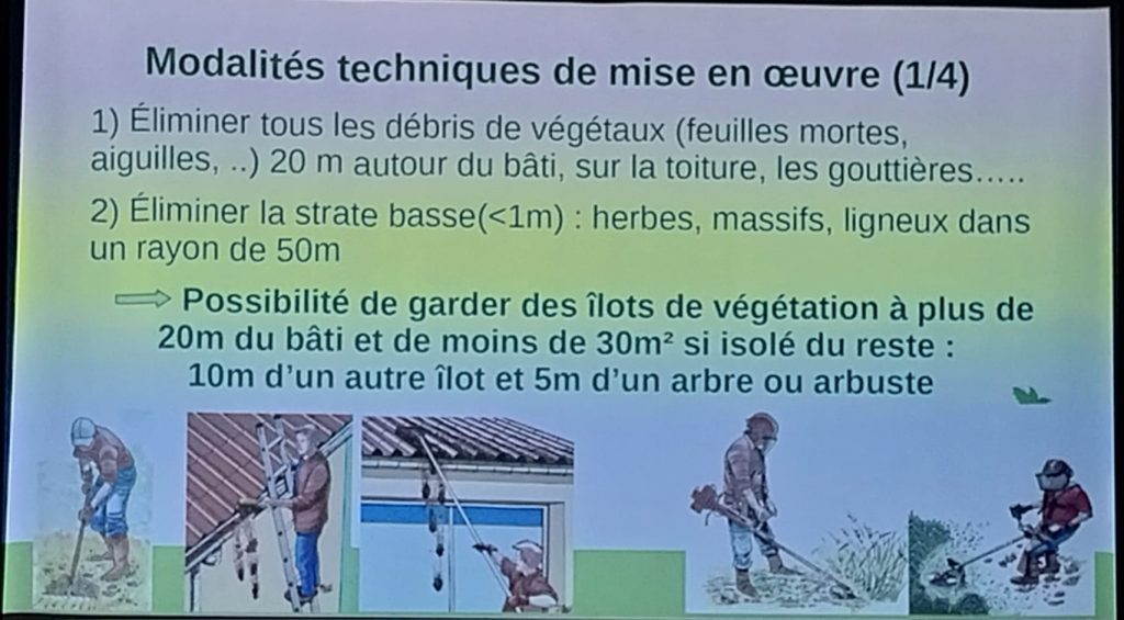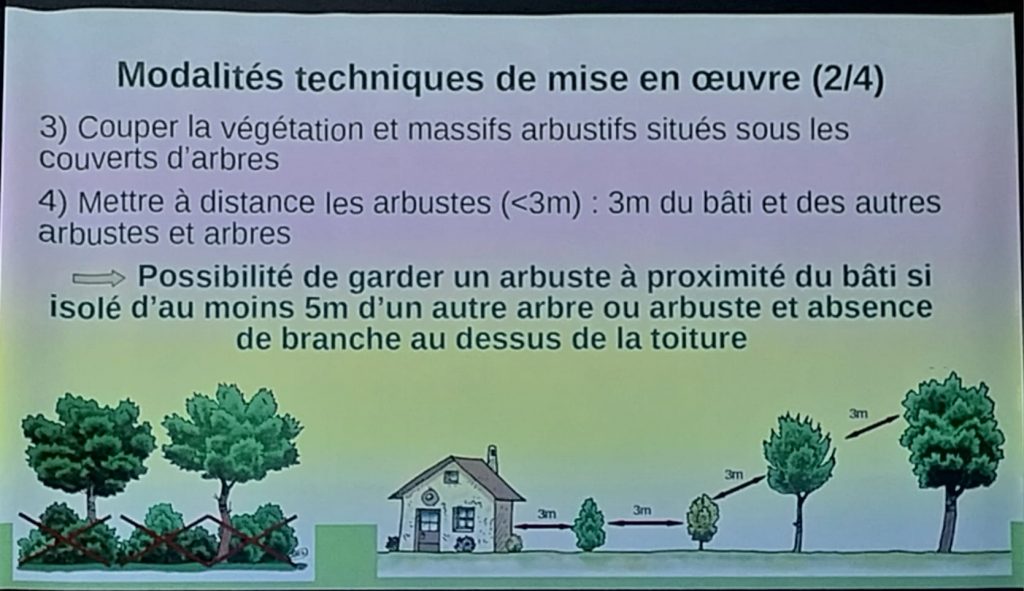 > Il faut retenir que la hauteur des flammes est de 3 fois celle du buisson et qu’il est donc important d’éliminer la strate basse pour conserver les grands arbres.