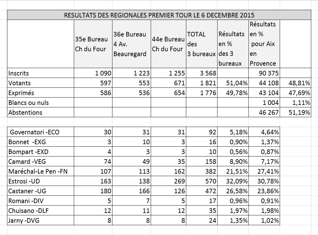 Extrait du journal La Provence du 7 décembre 2015 en ce qui concerne les données des 3 bureaux de vote.