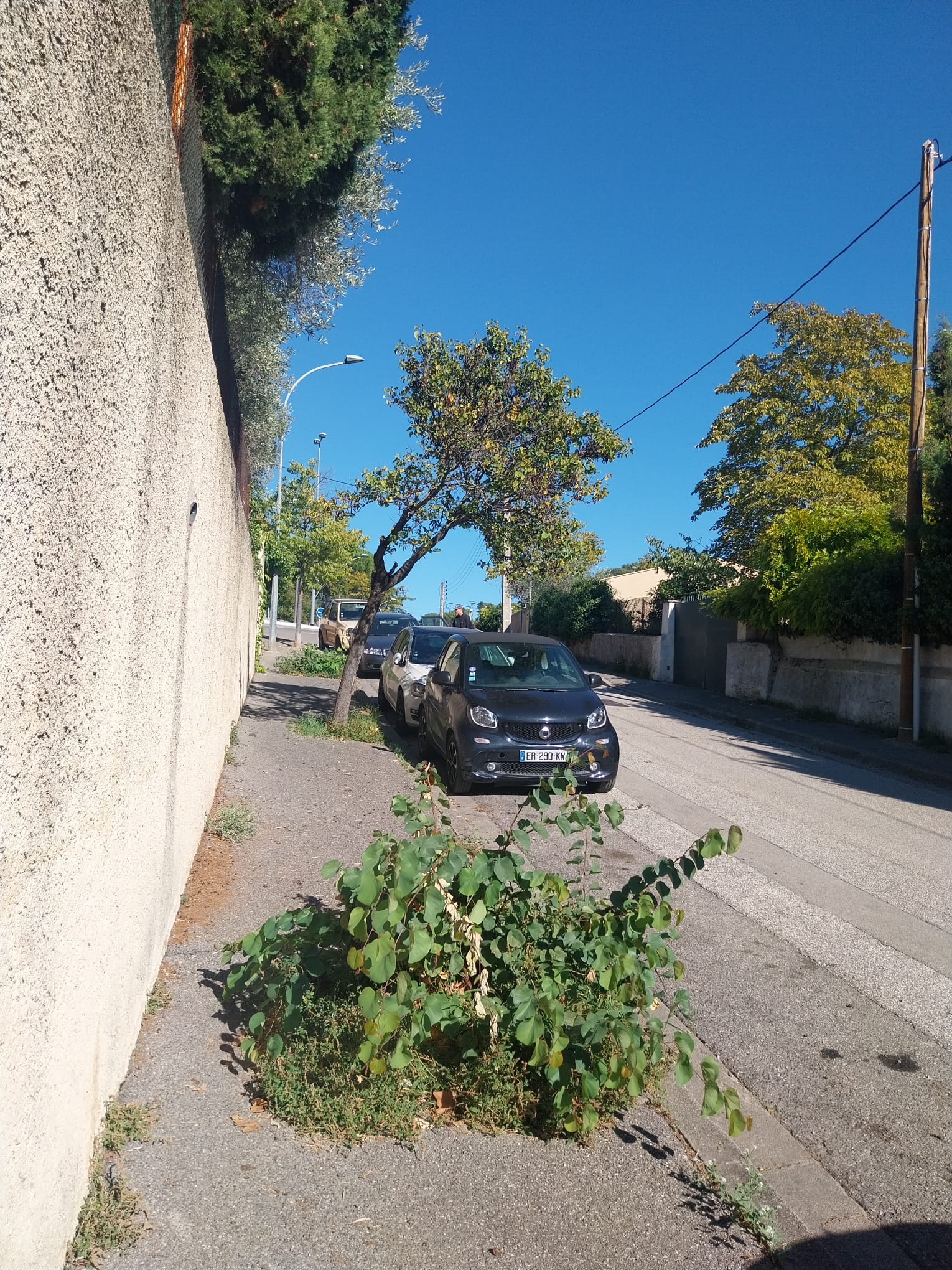 3. Avenue Fontenaille, côté impair, entre les Restaurants du cœur et le parking Trimond. : compléter l’alignement de micocouliers entamé il y a 10 ans vers les Restau du Cœur, pour rejoindre l’entrée du parking Trimond, Cela ferait un alignement au-dessus de Fontenaille sans toucher au trottoir. Idéalement, ce site qui comprend un stade, un terrain de boules, un parking et les restaurants du cœur pourrait être travaillé pour en faire un écrin, maillage vert entre Fontenaille et route des Alpes. Le restaurant récemment détruit aurait pu compléter ce lieu si charmant, à l’écart du trafic. NB: Il faut tenir compte du canal des Pinchinats qui passe en souterrain, parallèlement à la rue, venant des Pinchinats pour aller à l’Arc en parcourant le centre-ville