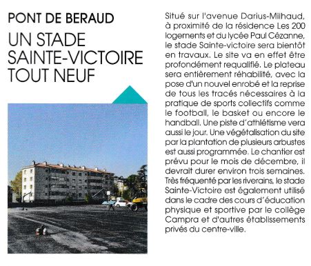 Au sujet de la végétalisation du site : puisque sur l’avenue Fontenaille on ne peut ( veut ) plus planter d’arbres sur le trottoir qui est juste sous ce stade, il serait très judicieux de planter des micocouliers ( et non pas des arbustes ) entre le stade et l’avenue, près du grillage : cela ferait un bel alignement avec les 4 micocouliers qui avaient été plantés très récemment par une association ; ces 4 arbres sont bien vivants et on aurait ainsi une avenue plus accueillante en évitant ce triste effet de rupture entre le lycée Cézanne et le collège du Sacré Coeur . C’est le moment de bien choisir , notre quartier résidentiel mérite qu’on le mette en valeur , c’est notre seule avenue !