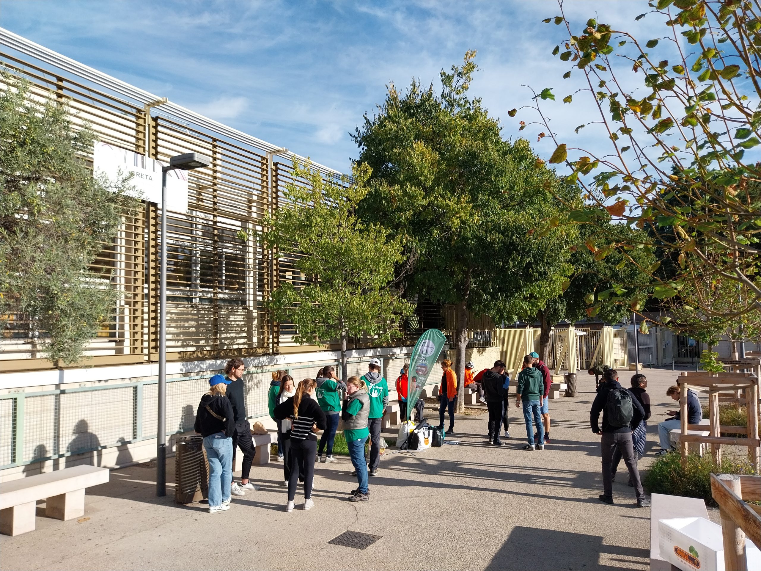 Les organisateurs de La Pérenne nous accueillent à 10h00 devant notre lycée , nous expliquent le déroulé de cette matinée et distribuent gants , sacs poubelles et boites .