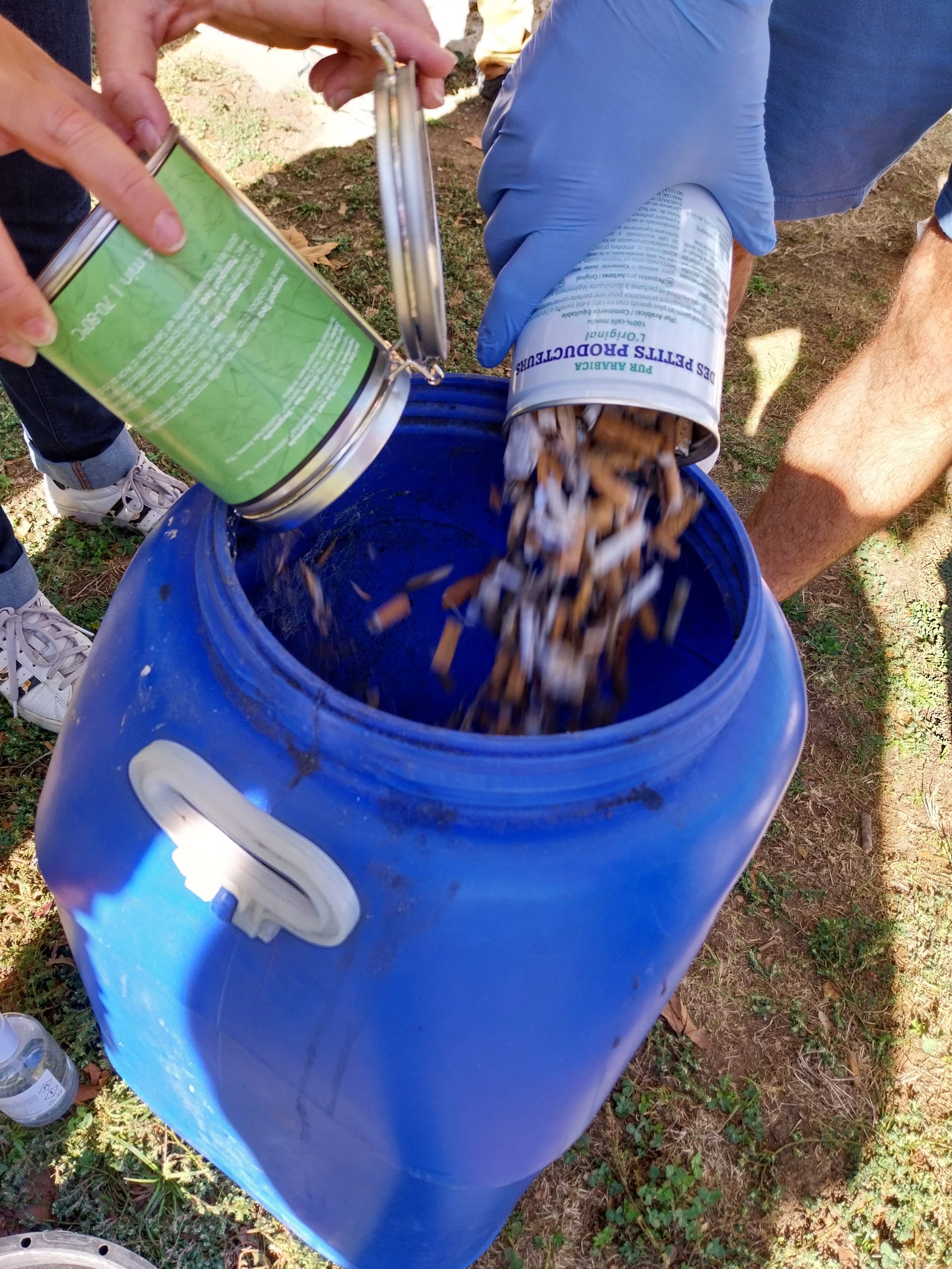 Chacun ramasse, remplit son sac et sa boite de mégots. Objets de toutes sortes, plastiques, bouteilles, canettes, capsules, Découverte du quartier pour certains.