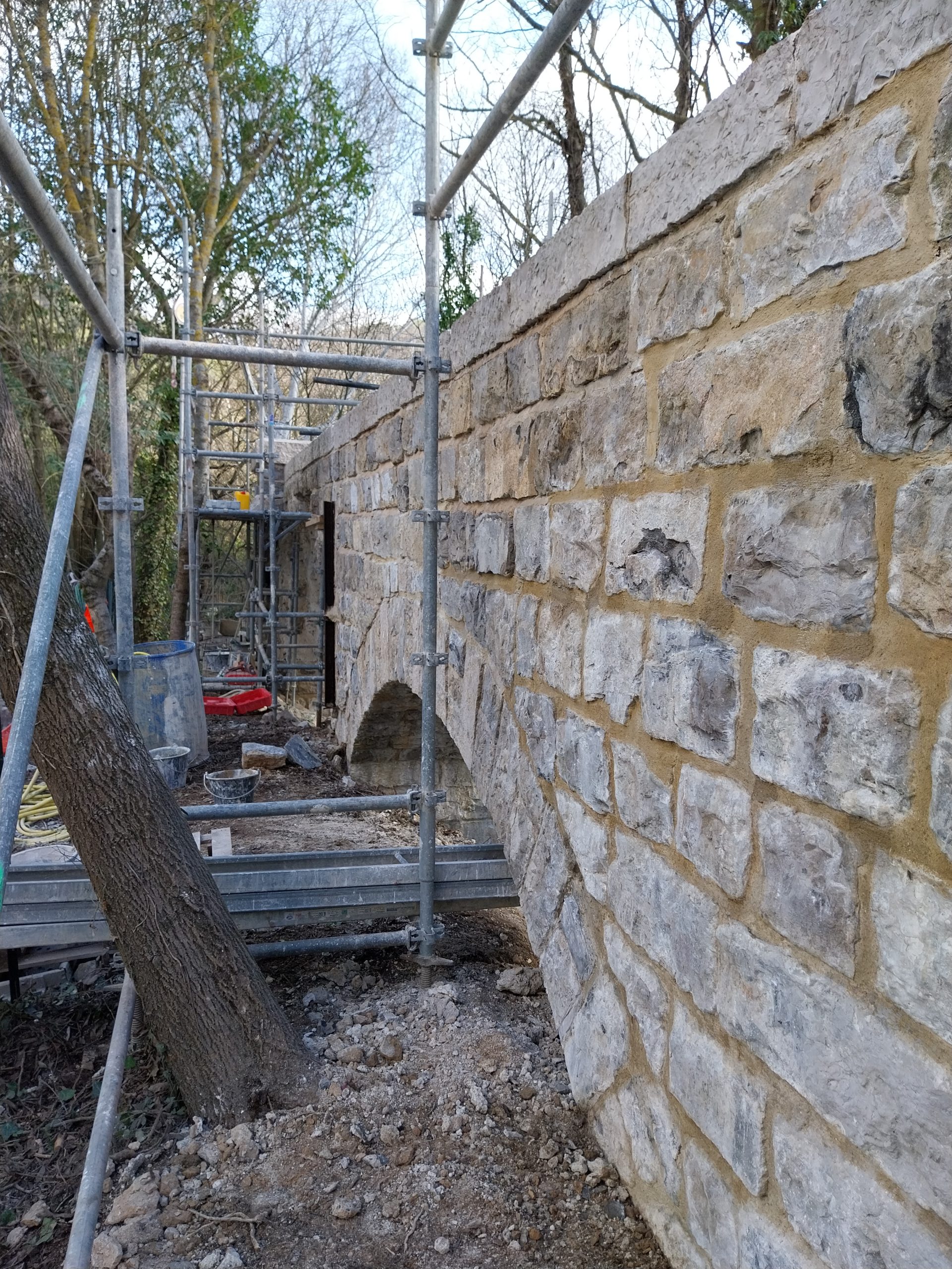 Les nouveaux joints ont été recouverts avec un revêtement en accord avec la couleur des pierres du pont ; des forages ont été percés dans les pierres pour stabiliser et consolider la structure par l’intérieur grâce à des tiges filetées.