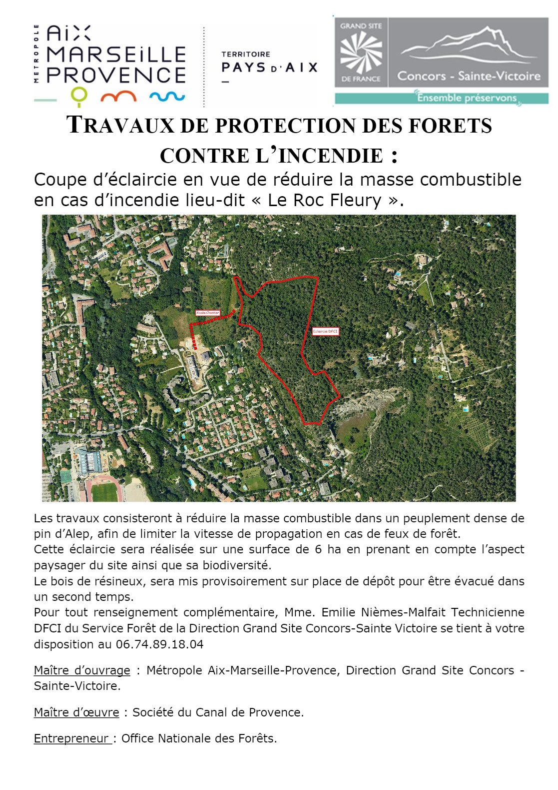 Les travaux de « l’éclaircie » commencent le 3 mai ce qui implique des aménagements sur l’ancien canal de Provence pour permettre le passage d’engins de chantiers …..et de voitures de pompiers en cas de besoin .