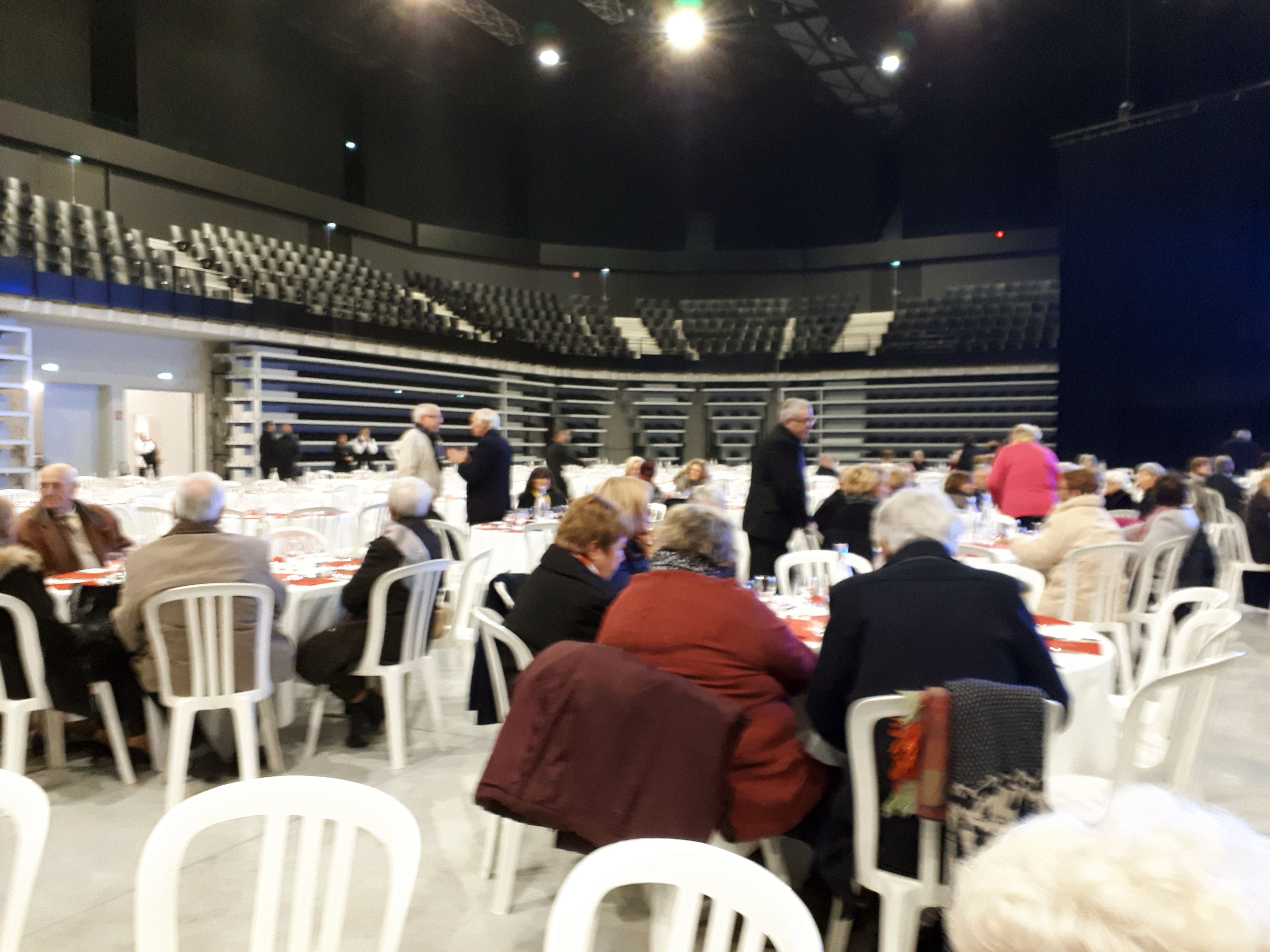Pour cause de travaux, le Pasino ne pouvant recevoir les quelques 2.500 invités (en plusieurs jours) de Mme le Maire, l’Arena offrit son arène sportive aux “Seniors“ de la Ville.