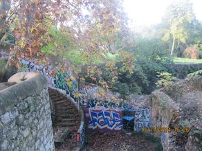 Le découpage du muret (glissière en béton et non mur antibruit) a été réalisé à la demande de certains pour permettre la visibilité de l’entrée du lavoir, effectivement originale et jolie à la différence de ce muret inutile. La mairie devrait compléter cette trouée par la mise en place d’un panneau en plexiglace pour garder cette perspective.