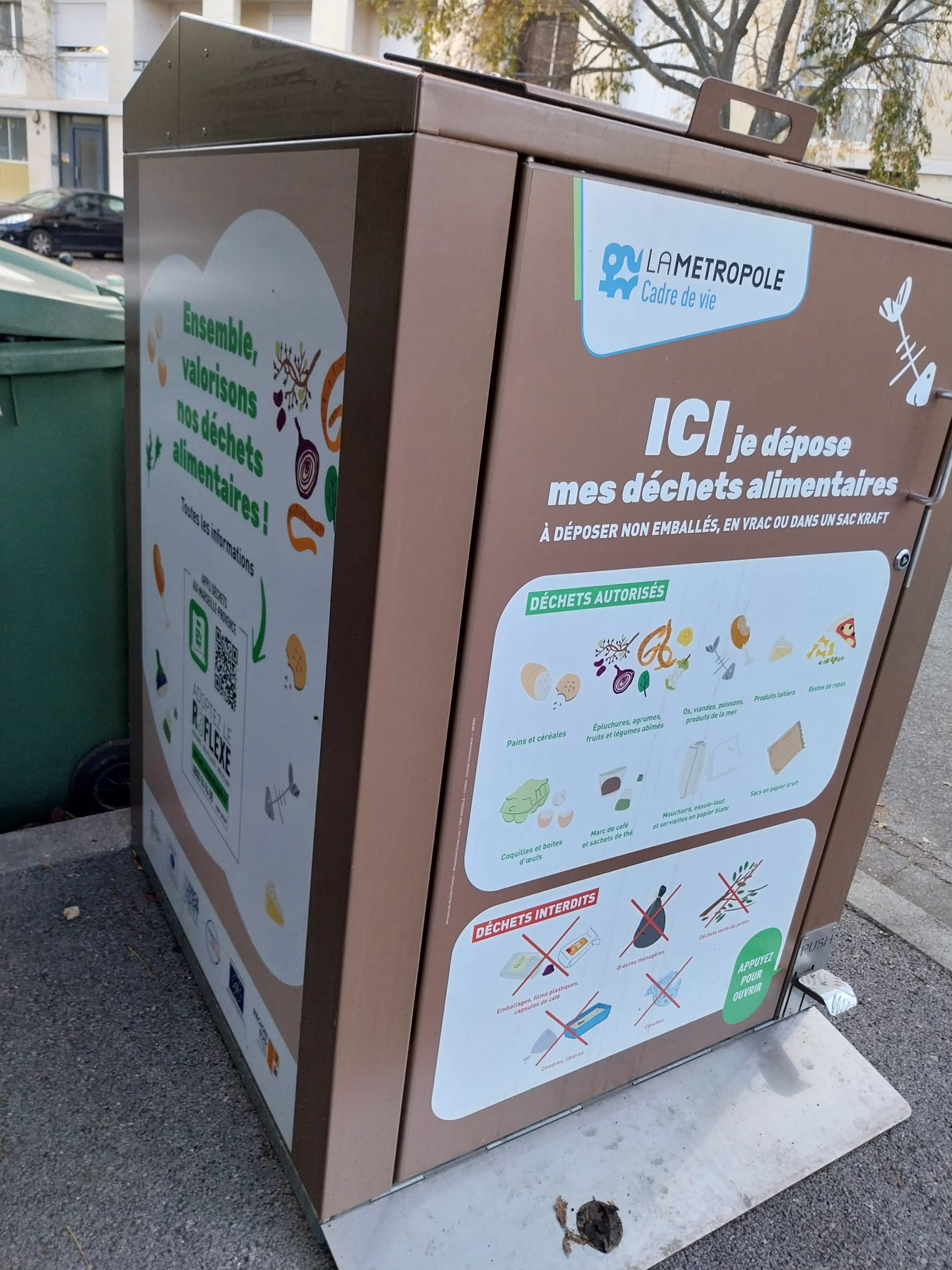 > Bio déchets: épluchures et restes de repas sont à placer dans les nombreux containers marron installés par la Métropole, ou dans les bacs à compost du parc Rambot.