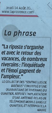 BRAVO ! Tout le succès revient au collectif « Les sentinelles de Bibémus » et à son coordinateur Jacques de Welle, le CIQ ne fut qu’un relais, il a contribué à la mise en place du collectif et a appuyé la démarche auprès de la Mairie.
